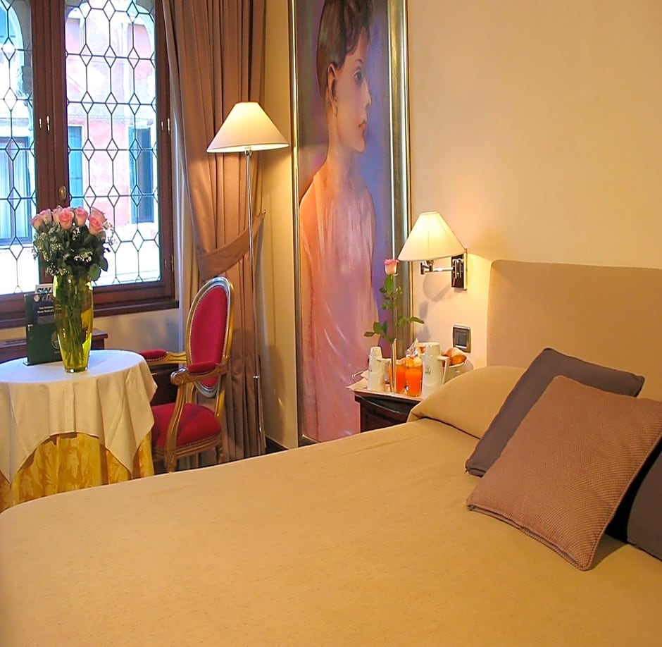Spacious air-conditioned room with a bath and luxury furnishings. Overlooks a characteristic Venetian street. The private bathroom offers free toiletries and slippers.